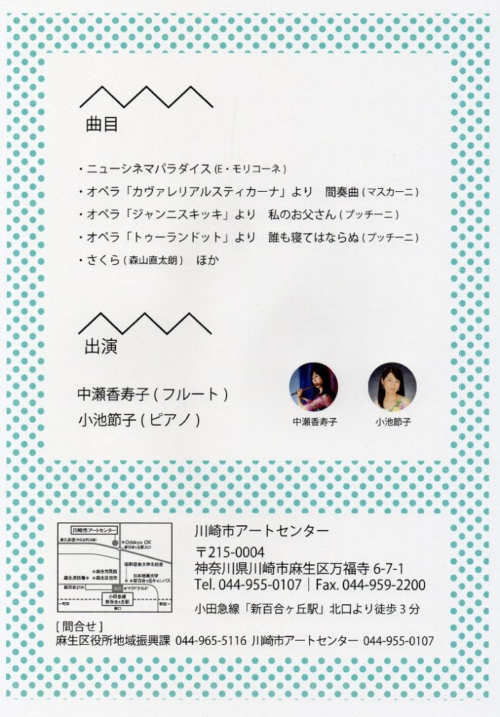 出 演:中瀬香寿子(フルート)・小池節子(ピアノ)