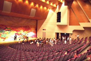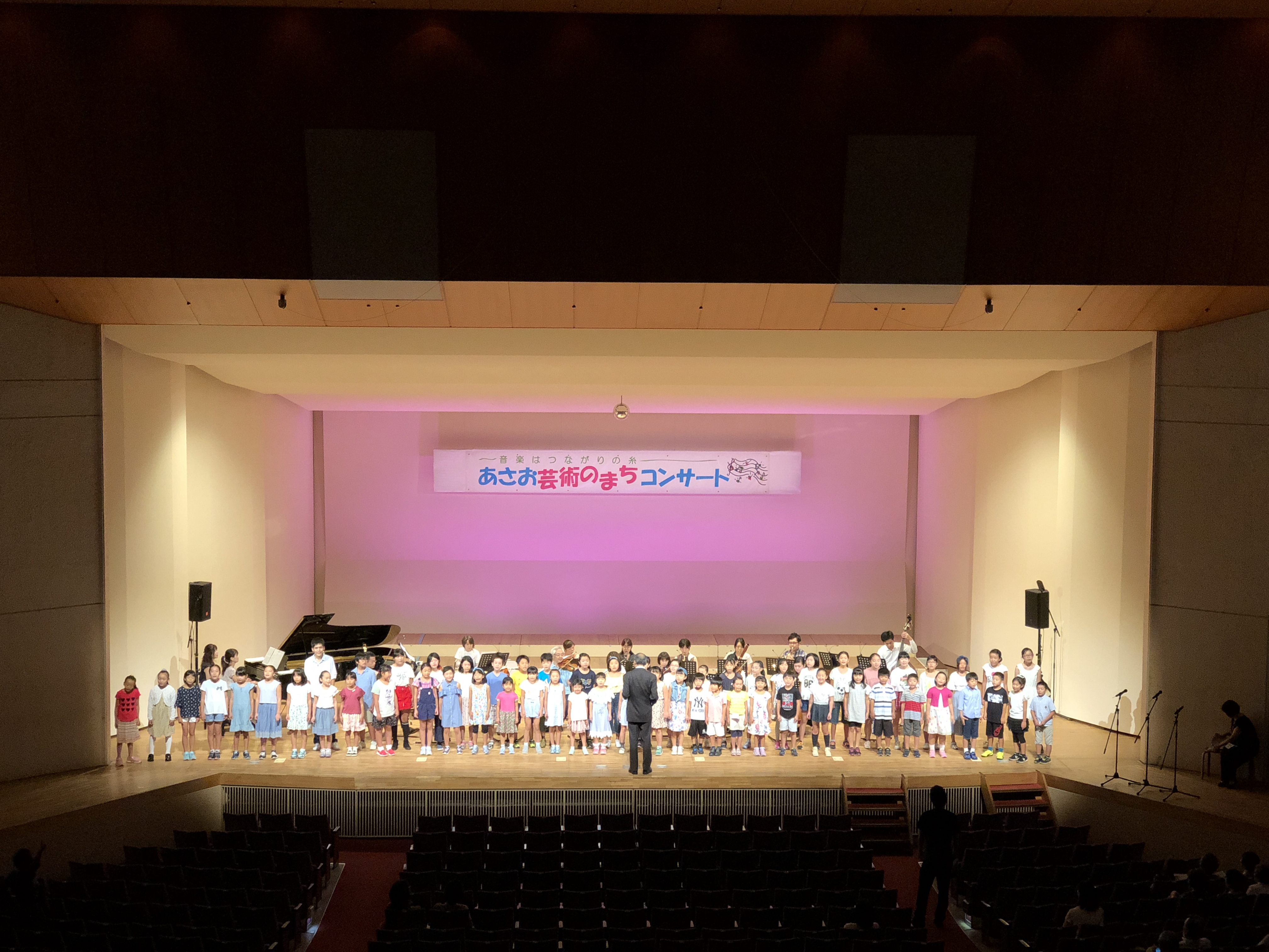 本日、麻生市民館ホールで開催される第131回あさお芸術のまちコンサート「夏のハーモニー」(13:00開場、13:30開演)は、現在会場設営とリハーサルが行われています。