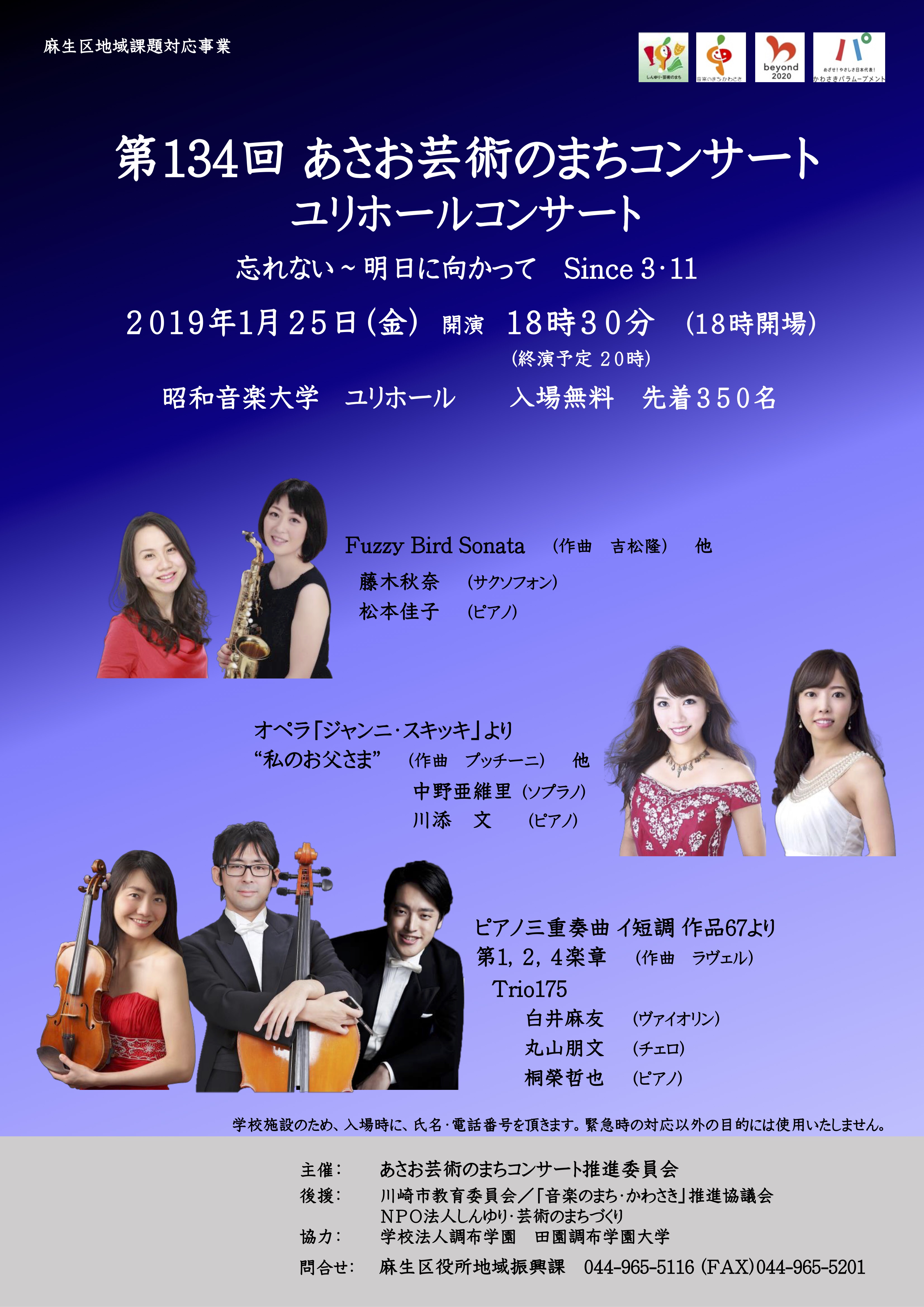 - 後 援 川崎市教育委員会、「音楽のまち・かわさき」推進協議会、NPO法人しんゆり・芸術のまちづくり