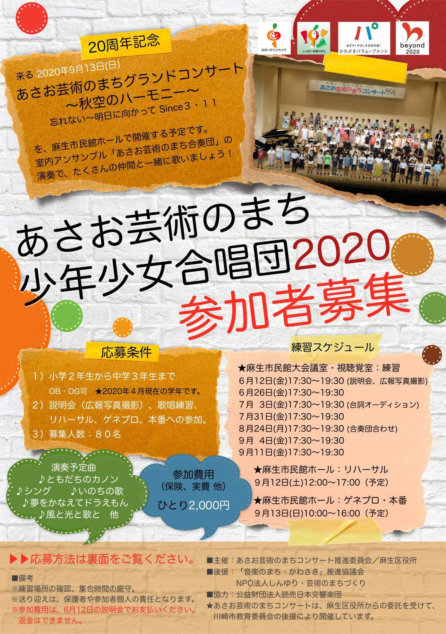 「あさお芸術のまち少年少女合唱団 2020」の参加者を募集いたします。