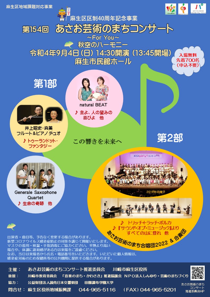 第154回あさお芸術のまちコンサート~For You~秋空のハーモニー
